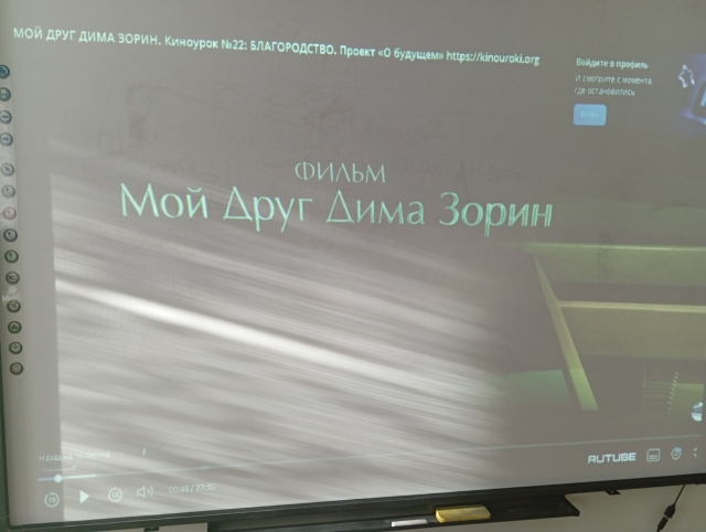 Во 2-3 классах состоялся показ фильма «Мой друг Дима Зорин». Этот фильм о внутренней силе мальчика, сумевшего объединить целый город, и о преображениях, которые возможны, когда сердце благородно, а стремления высоки. После просмотра и горячей дискуссии ребята сделали вывод, что только с огромным желанием и усердием можно объединить разных людей для благого дела.